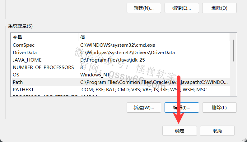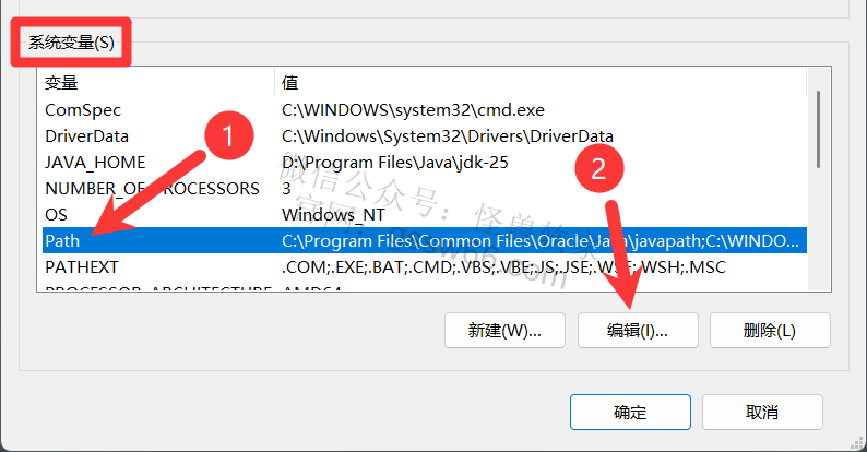 16,变量名输入“JAVA_HOME”,变量值输入JDK的安装路径(如“D:\Program Files\Java\jdk-25”),点击“确定”