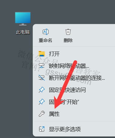 12,在桌面选中“此电脑”图标,点击鼠标右键,点击“属性”