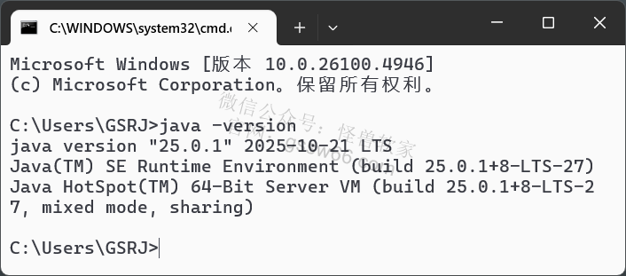 22,输入“java -version”,按回车键,显示JDK版本号。安装完成。
